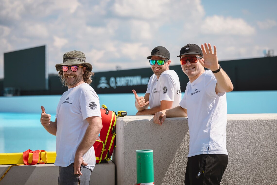 Unser Lineup ist der Startpunkt für alle Wellen im A-Frame Modus. Von hier aus paddelst du deine Wellen an und machst deine Take-Offs. Da sich der Ausgangspunkt für alle vier Surfzonen hier zentral im Wave Pool befindet, bist du nie ganz getrennt von Freund:innen oder Familienmitgliedern, die zur gleichen Zeit eine andere Session oder ein anderes Surf-Level gebucht haben.