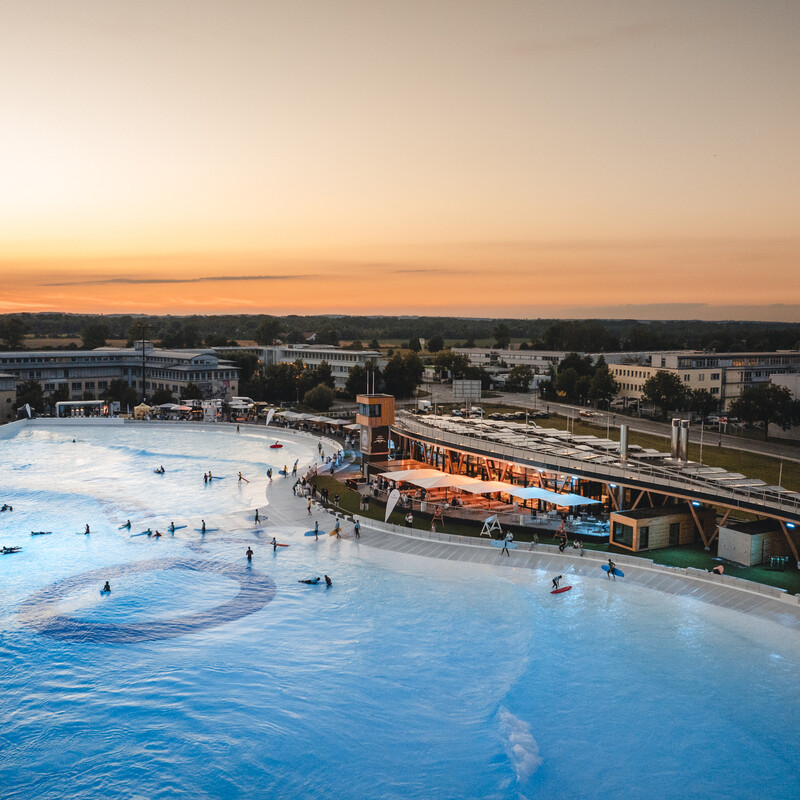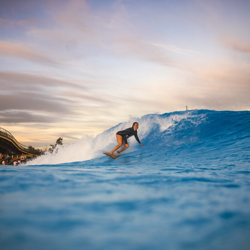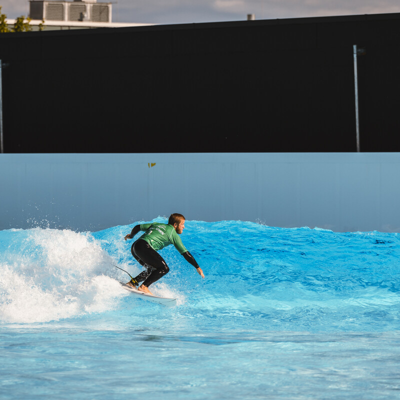 In unserem Wavepool wird in bis zu vier verschiedenen Zonen gleichzeitig gesurft. Pro Surfzone gibt es ein Maximum von 14 Surfer:innen. Durch die begrenzte Anzahl an Surfer:innen pro Zone sind dir eine Vielzahl an Wellenversuchen und ein entspanntes Lineup garantiert.