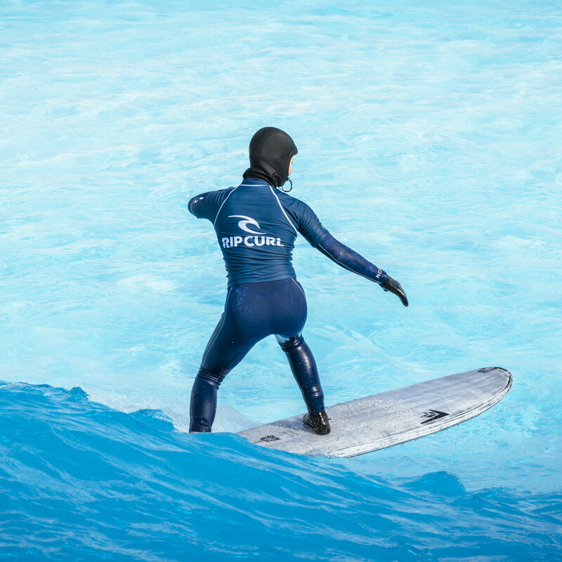 In unserem Wavepool wird in bis zu vier verschiedenen Zonen gleichzeitig gesurft. Pro Surfzone gibt es ein Maximum von 14 Surfer:innen. Durch die begrenzte Anzahl an Surfer:innen pro Zone sind dir eine Vielzahl an Wellenversuchen und ein entspanntes Lineup garantiert.