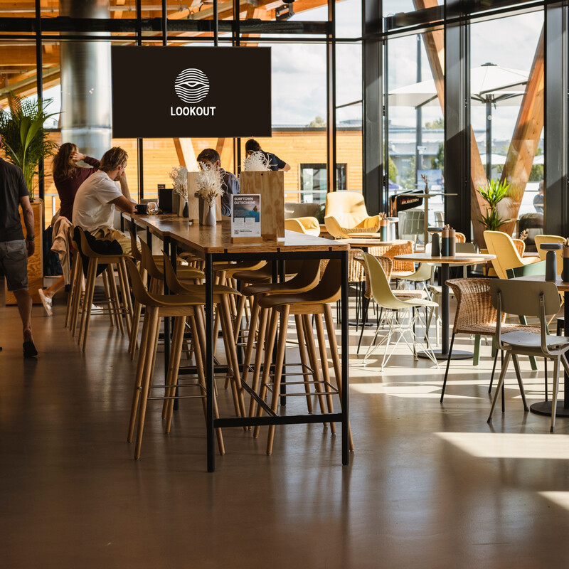 Das Lookout, unser Restaurant in der O2 SURFTOWN MUC, ist der ideale Ort für alle, die in einzigartiger Atmosphäre genießen und chillen wollen. Direkt am Wavepool kannst du relaxen und dabei die Surf-Action verfolgen.