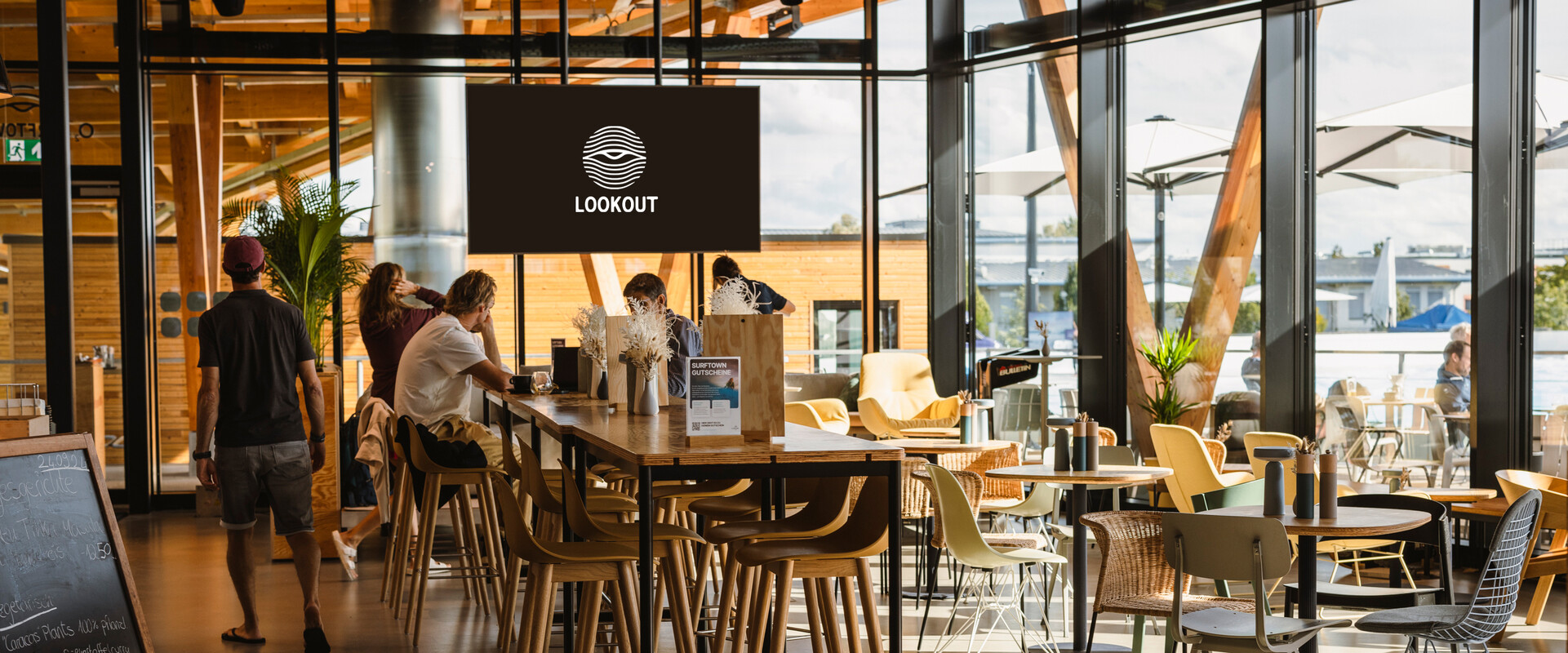 Ein kulinarisches Erlebnis mit Blick auf perfekte Wellen. In unserem Restaurant erlebt ihr nicht nur beeindruckende Surfkunst, sondern auch eine vielfältige, international inspirierte Küche. Der Restaurant-Name Lookout wurde bewusst gewählt, um beiden „Anlässen“ gerecht zu werden: dem Ausblick auf die kulinarischen wie auch auf die optischen Highlights des Standortes. Das Lookout soll sich sowohl als kulinarischer Treffpunkt wie auch als spannender sportlicher „Beobachtungsposten“ einen Namen machen.